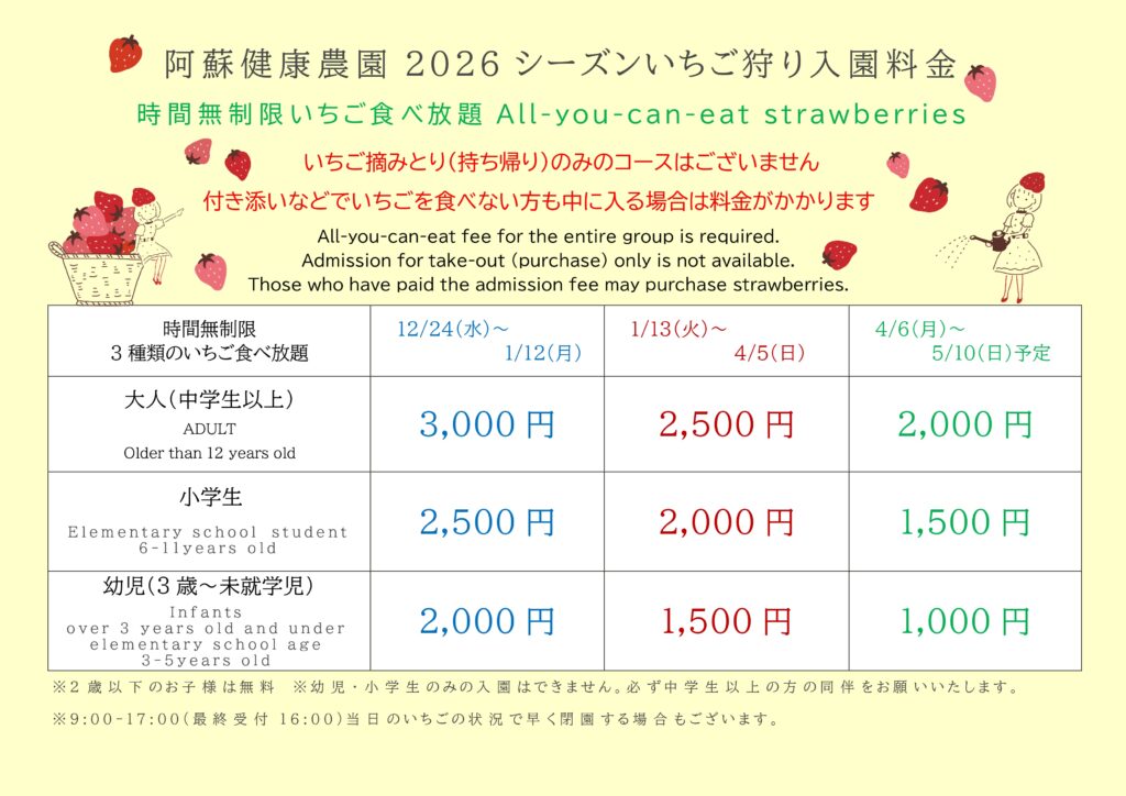※いちごの生育や天候により休園や時間の変更がございますので、